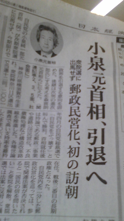 小泉元首相引退するのですね。