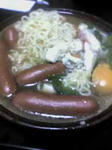 インスタントラーメンだけでは寂しいので、冷蔵庫の余り物を入れてみる。