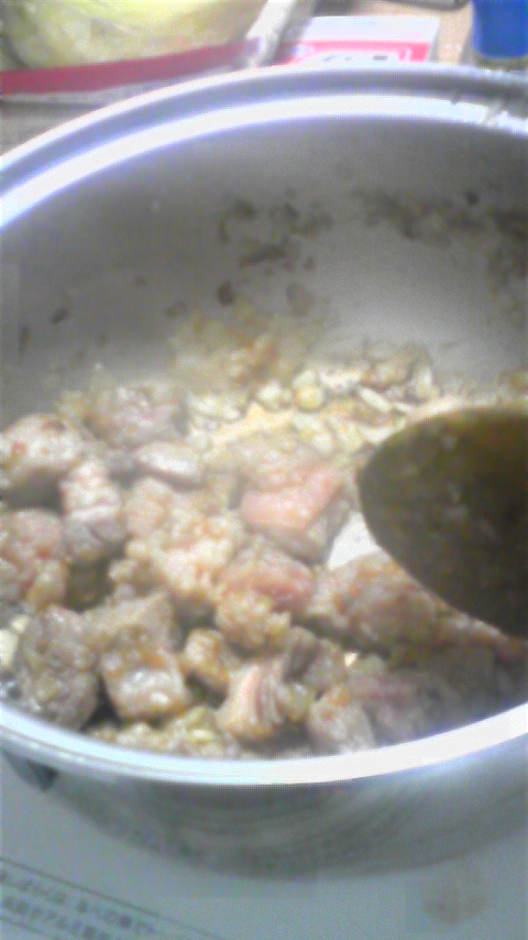 特別にファムズデリから取って貰った筋と脂だらけの筋肉だが、カレーにはこんな肉が一番美味い。