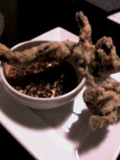 富山市の松川べりのサンシップの「双」で、カエルの唐揚げ。