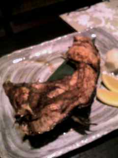 西町中央通りの「かざくら」で本マグロのカマ岩塩焼き。