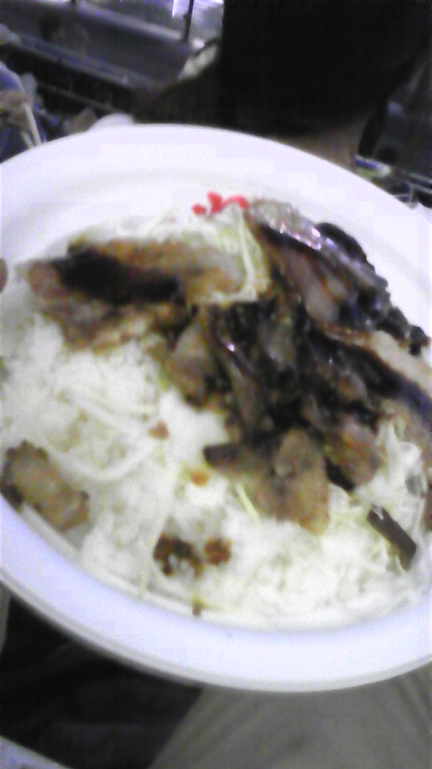 とんてき弁当(豚ロースステーキをニンニクと炒めてご飯の上に乗っけます。)