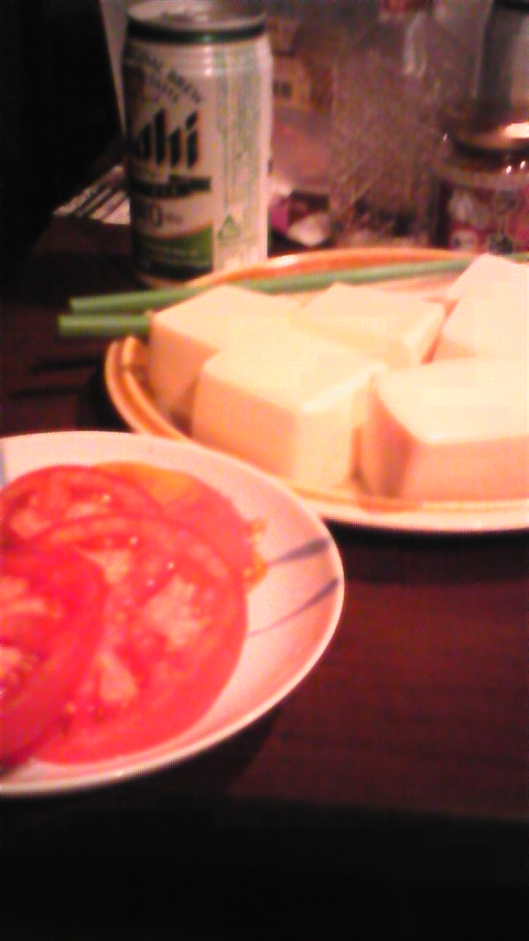 今日の夕飯は豆腐二丁とトマトのみ。